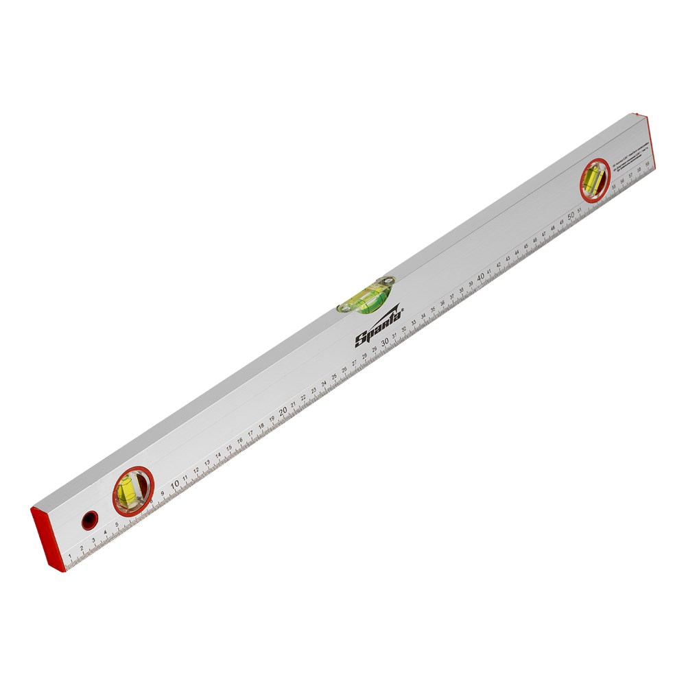Алюминиевый уровень Sparta 331235 длиной 600 мм, с 3 глазками и линейкой, используется на строительной площадке и во время ремонта. Повышает точность выполнения облицовочных, отделочных и других работ, позволяя проверить отклонения по горизонтали и вертикали, измерить угол наклона, выровнять поверхности и предметы.