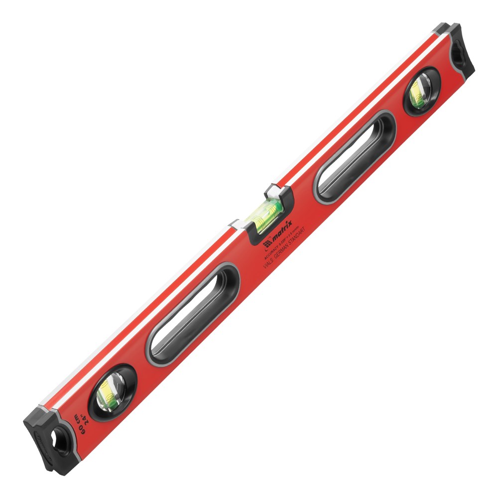 Уровень алюминиевый, 600 мм, 3 глазка, ударопрочные заглушки, двухкомпонентные ручки Matrix ProFI