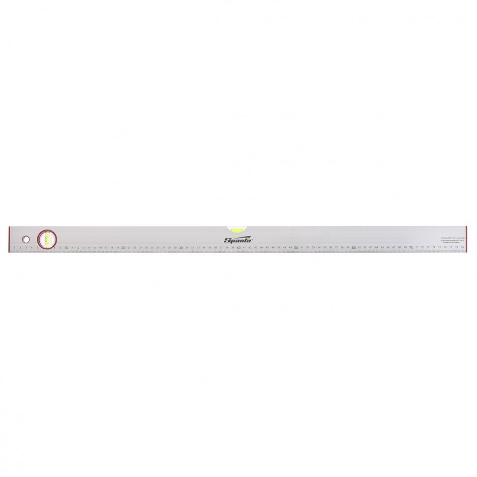 Алюминиевый уровень Sparta 35108 длиной 800 мм, с 2 глазками и линейкой, рассчитан на применение в быту и в производственных условиях. Он поможет добиться точного выстраивания разметочных линий для последующей установки конструкций, полок, укладки облицовочных материалов и т.д. Две пузырьковые ампулы обеспечивают точный контроль отклонений поверхностей от горизонтальной и вертикальной плоскостей.,Для определения отклонения вертикали 90 градусов необходимо использовать пузырьковую ампулу только в верхнем положении уровня. Только базовая поверхность является рабочей (противоположная ампуле 180 градусов).