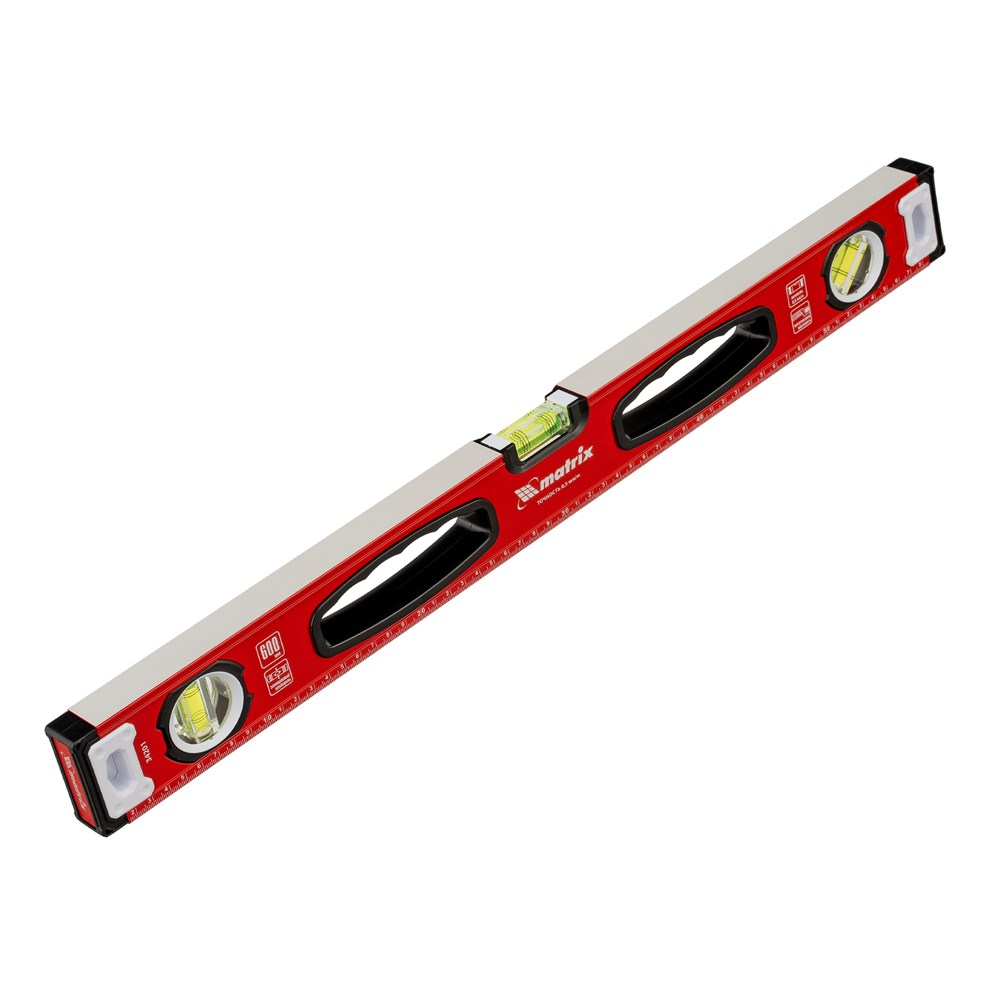 Уровень алюминиевый, фрезерованный, 3 глазка, рукоятки, 600 мм Matrix