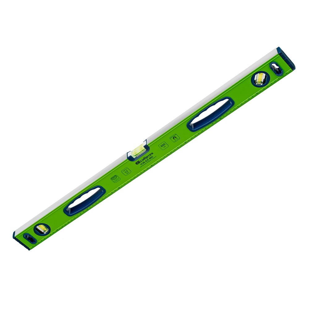 Уровень алюминиевый УСМ-0,5-800, фрезерованный, 3 глазка, магнитный, рукоятки, 800 мм Сибртех