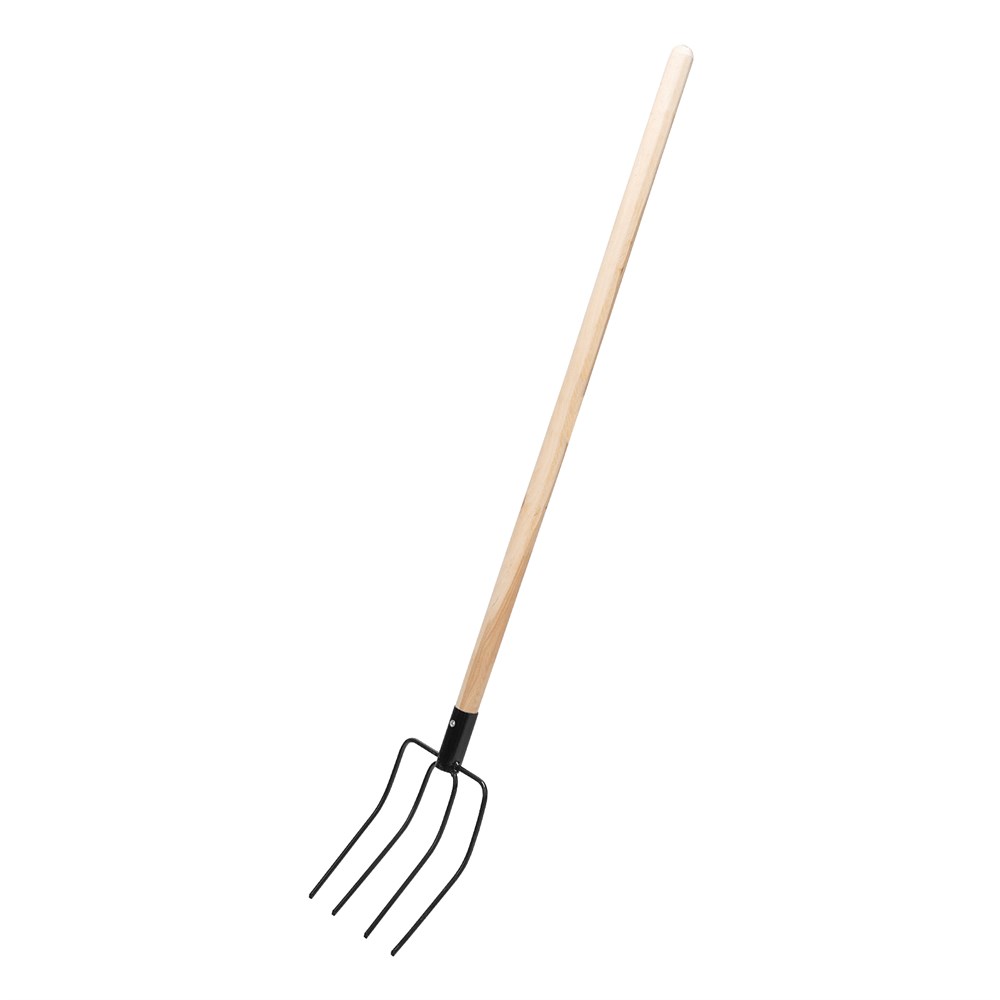 - Комфортная работа — деревянный черенок обеспечивает удобный хват, а рога с острыми концами надежно захватывают траву и сено.