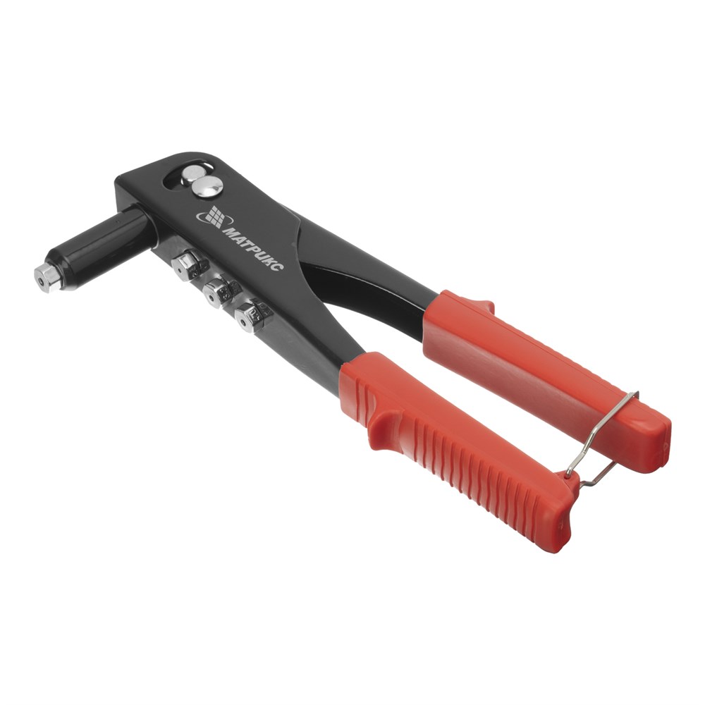 Заклепочник МАТРИКС 40515 длиной 225 мм используется с вытяжными заклепками диаметром от 2,4 до 4,8 мм. Инструмент применяется при работе с многослойным материалом и различными деталями из металла, пластика и т. д. В комплект входят сменные насадки для заклепок различного диаметра, фиксирующиеся на корпусе инструмента, поэтому их можно быстро менять при необходимости. Заклепочник будет полезен во время проведения строительных и ремонтных работ, пригодится также дома, в гараже или на даче., ,Преимущества,Прочность и долговечность — корпус выполнен из конструкционной стали.,Быстрая установка нужной насадки — в комплект поставки входит монтажный ключ.,Комфортная работа — рукоятки с рельефной поверхностью не выскальзывают из руки.,Удобное хранение — металлическая скоба надежно фиксирует рукоятки в нерабочем состоянии.